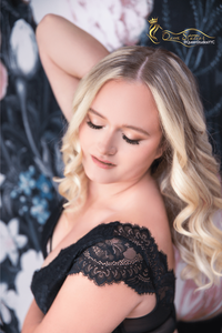 Finally, booking this boudoir shoot had me very nervous of course. I started to have thoughts that I was being silly into thinking I could do this. What if my body isn't how I feel? What if the photographer isn't supportive and positive? But despite all that, I made myself go to the session. I got my hair and makeup done and couldn't believe how gorgeous I looked. I met Quinn, and she was bursting with positivity. She was so excited about my outfits, and she told me what she envisioned. I was nervous coming out with my first outfit, but Quinn helped me through it, and the whole shoot was an amazing experience. I felt gorgeous in my outfits, and then seeing the photos afterwards, my mind was blown. I loved every one of the photos. It was hard to pick! When I left the shoot, I felt amazing, and I was so happy to have pushed myself to do this. From the moment I got there to leaving, everyone made sure I looked and felt gorgeous. This team of women is amazing and beautiful on the inside and the outside. They know how to make you feel comfortable and help you have a good time throughout your shoot. I'm so happy I went with them to do my boudoir shoot. I can't wait to receive all my photos!